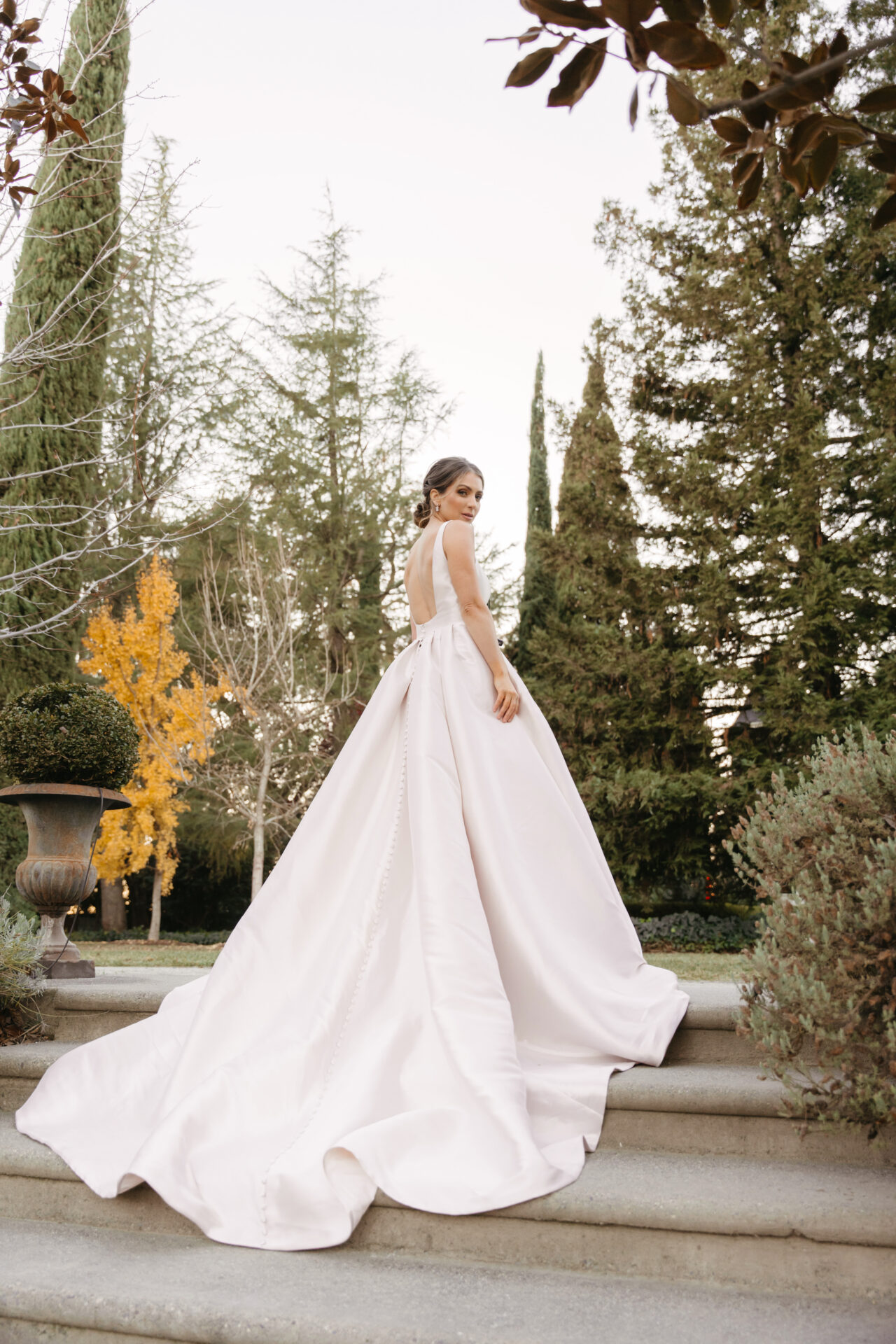 Description: Make a dramatic statement down the aisle in this stunning princess bridal gown made with Shell Mikado fit for modern royalty. Elegant shoulder straps adorn the shoulder, complementing a deep V-neckline and banded waist. Subtle side cutouts lead to an chic squared open back detail accented by a row of fabric-covered buttons that trail down the back to the edge of the train. From the fitted waist, chic pleats give way to a voluminous ballgown skirt, concealing discreet and functional side pockets. For a royal princess bridal look that is still very much on-trend, Style 7953 captures timeless elegance with fashion-forward details for the modern princess bride.